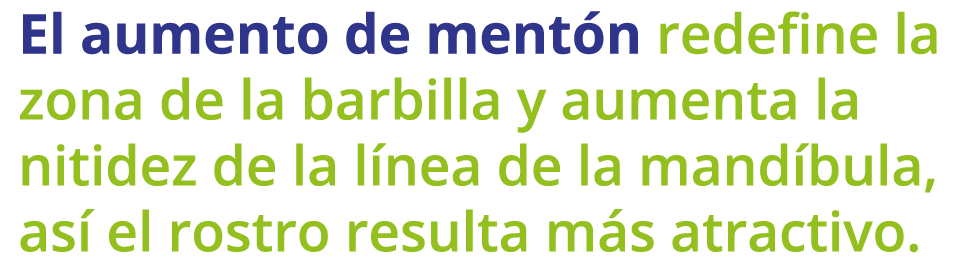 Utilizamos una prótesis de Medport o silicona que se coloca en el mentón a través de la boca, evitando una cicatriz visible.